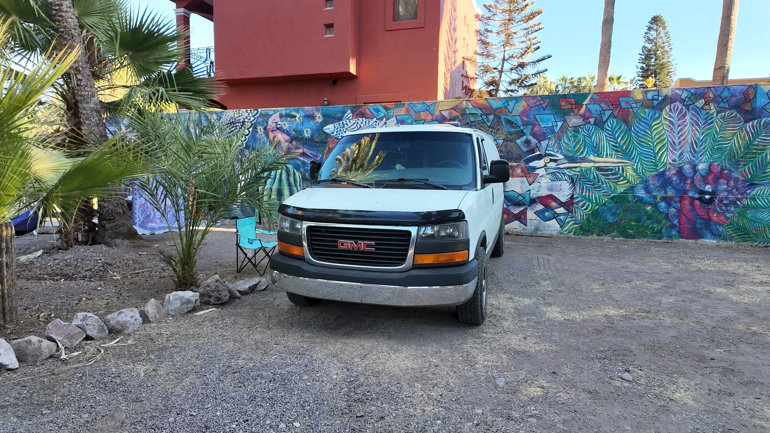 Il existe de nombreuses options de camping dans les environs de Loreto. Nous avons opté pour dormir pratiquement en plein centre-ville au Palmas Altas Retreat. À quelques minutes seulement à pied des attraits principaux et proche des restaurants, l’endroit nous a très bien convenu. Une unité sanitaire est à disposition ainsi qu’une petite aire de repas commune. Si vous cherchez à faire des rencontres, de nombreux voyageurs se réunissaient sur les chaises extérieures pour échanger. Le propriétaire se débrouillait en anglais. Nous avons donc eu une belle expérience à ce camping!